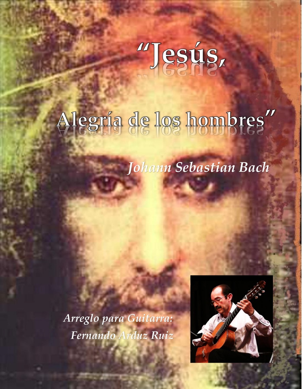 Partitura para guitarra, comprende JESÚS, ALEGRÍA DE LOS HOMBRES, obra del compositor del barroco alemán: Johann Sebastian Bach, en arreglo guitarrístico de Fernando Arduz Ruiz.