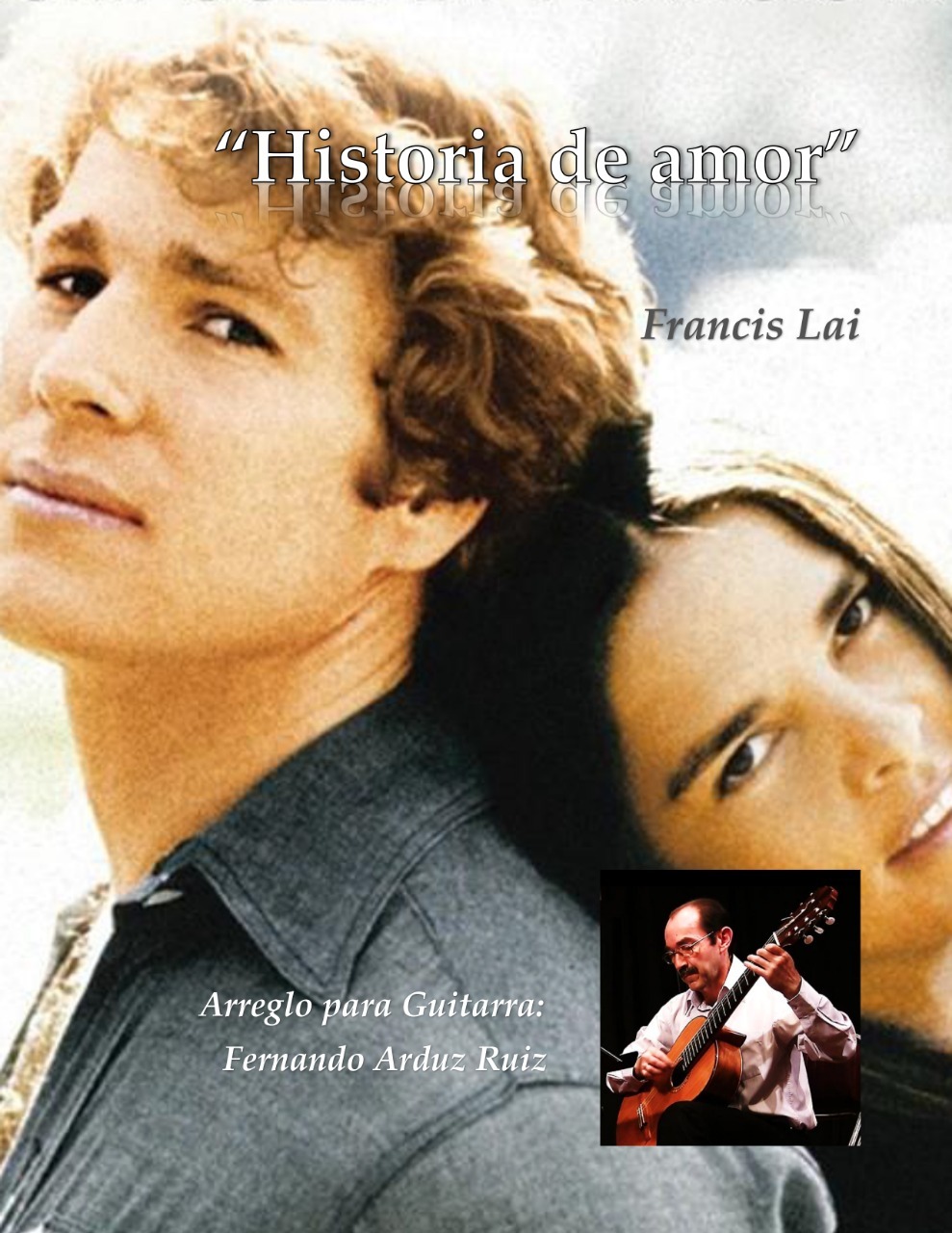 Partitura para guitarra, comprende HISTORIA DE AMOR, obra del compositor Francis Lai, en arreglo guitarrístico de Fernando Arduz Ruiz.